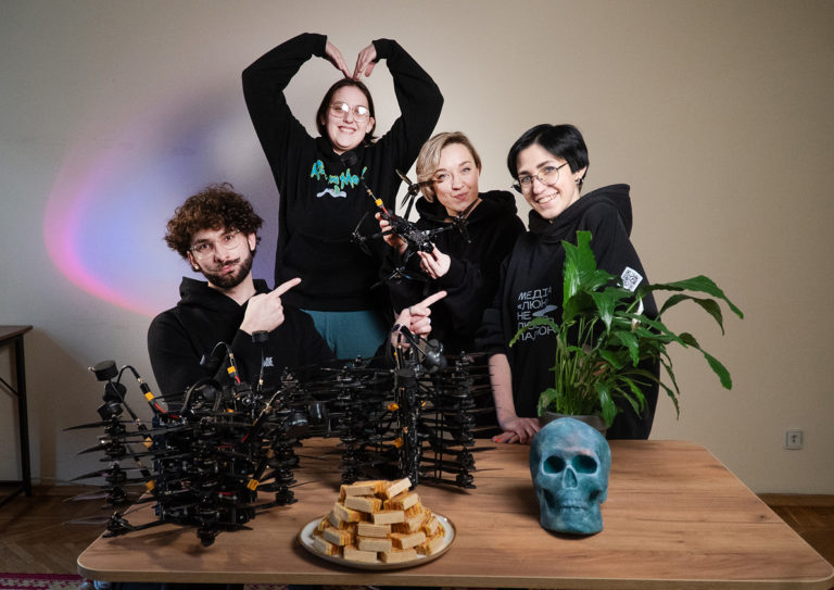 Lyuk team with FPV drones which were funded for the Ukrainian army — © Kateryna Pereverzeva archives