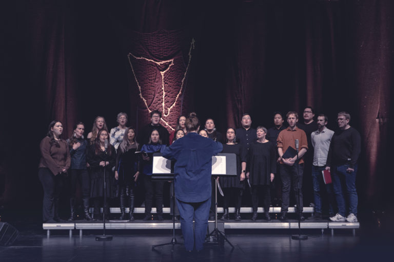 Greenlandic choir Ingiulik performing “Det Yderste Hav" taken in Nuuk cultural centre Katuaq, February 2025 at the release of the album — © Daniel Johnsen