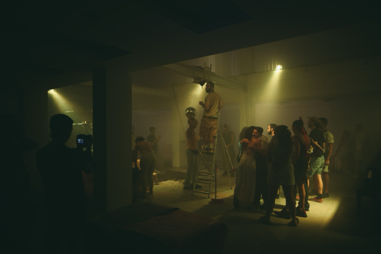 It also made bodies visible by redesigning participation itself. The collapse of formal, conceptual, and architectural separations between performer and audience is part of the project’s methodology. Bodies are not arranged to be looked at from a distance, but to coexist, move, rest, dance, and act together in a shared space.